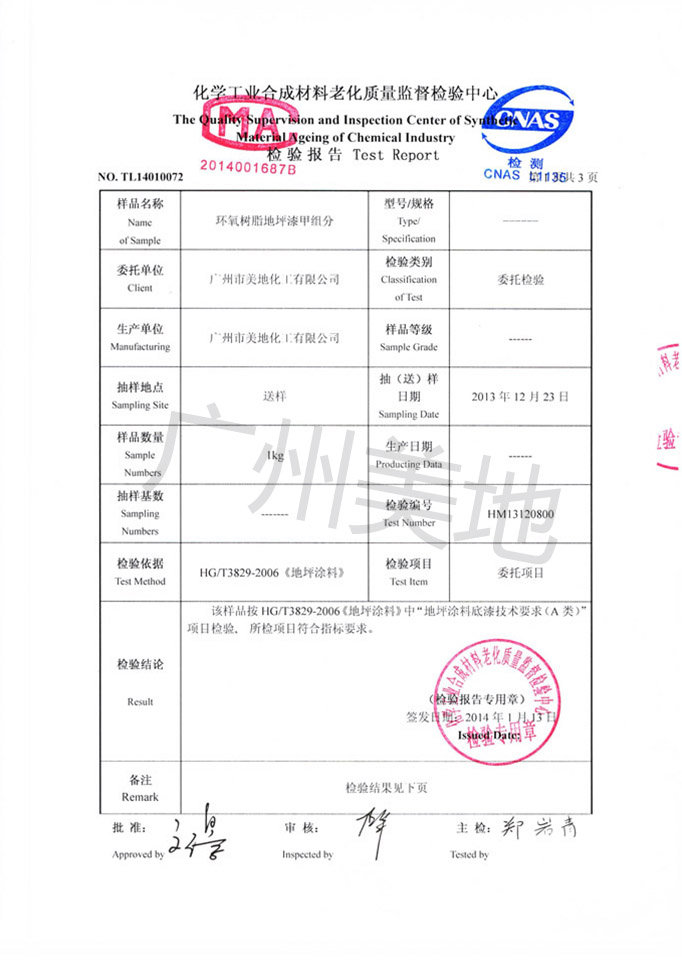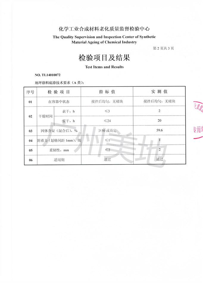 環氧自流平地坪漆檢驗證書