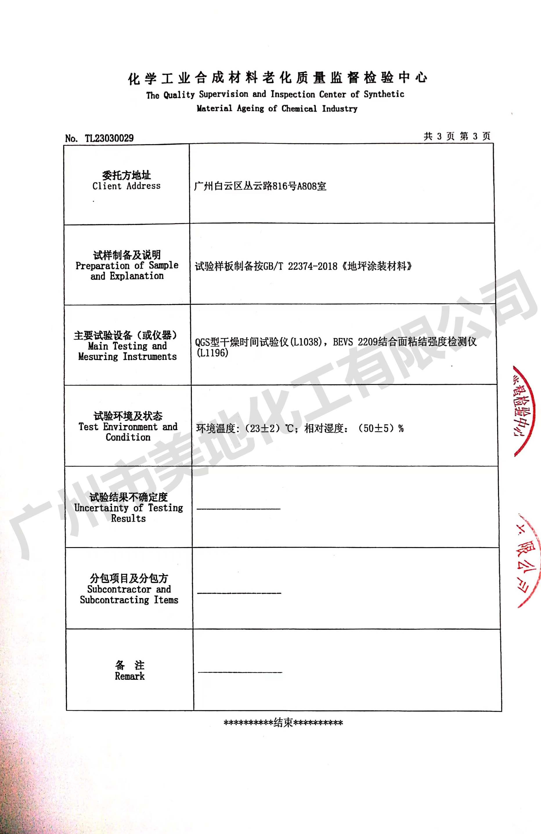 環氧自流平地坪漆檢驗證書